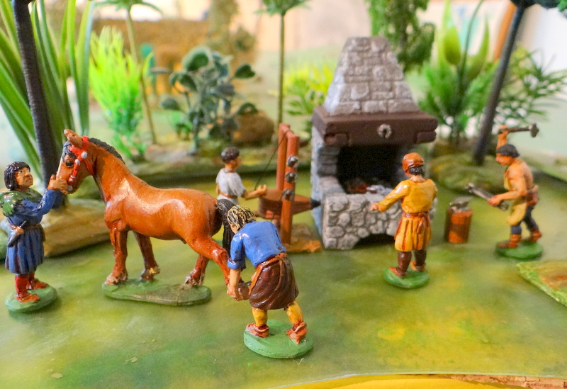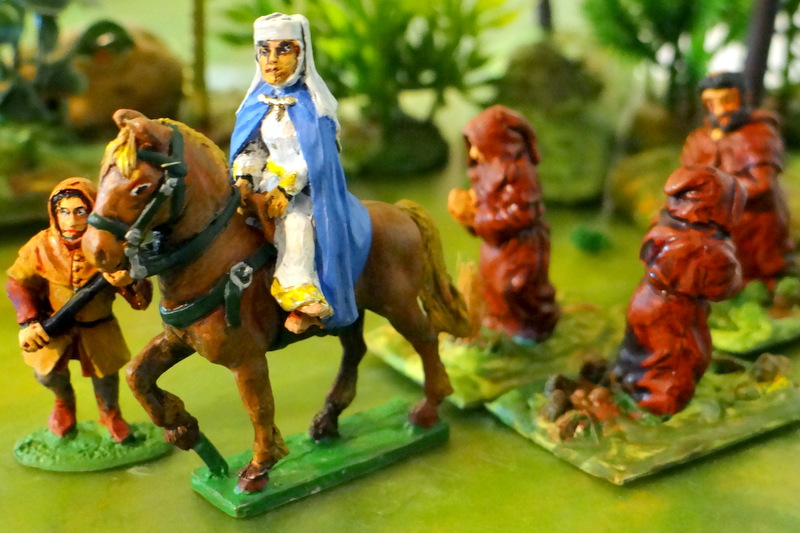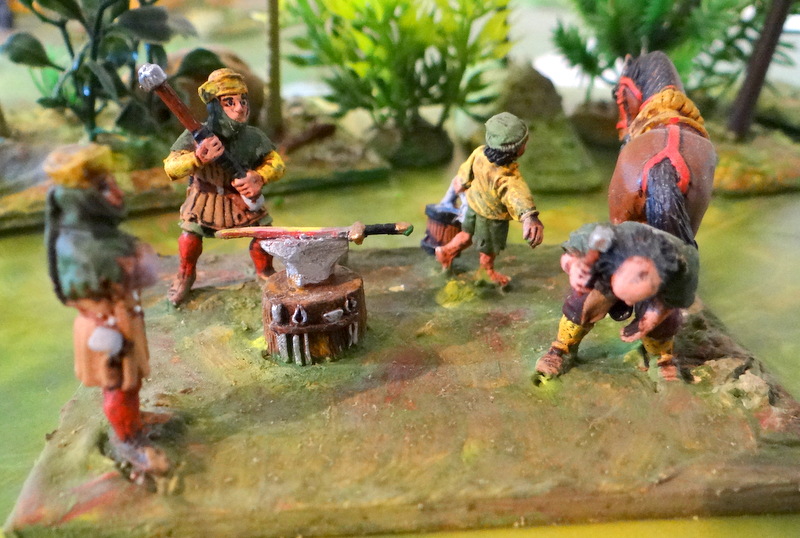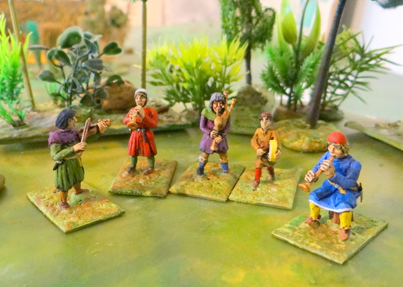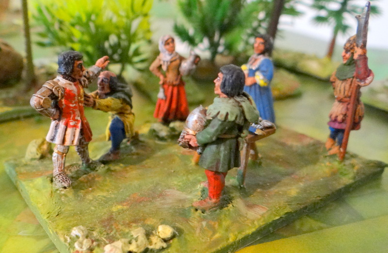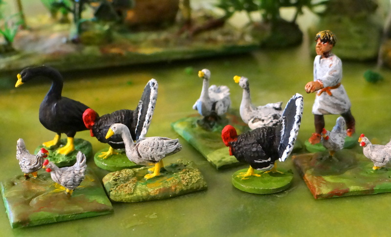 C’était avant que les fabricants ouvrent leurs catalogues à une foule de scénettes militaires ou civiles afin de satisfaire le plus grand nombre. J’ai déjà évoqué la marque « Irregular » mais on trouve de belles réalisations chez « Wargame Foundry » (Ah, le bon temps où ils vendaient leurs figurines à l’unité et au prix du marché !) et plus récemment chez « Mirliton », la firme italienne (pas donné non plus compte tenu des taxes et des frais de port). Cette dernière a considérablement développé son offre avec des boites à thème : 3 étals de bouchers différents , des scènes d’auberge, de mariage, de chasse, de cuisine etc. Quelques exemples :