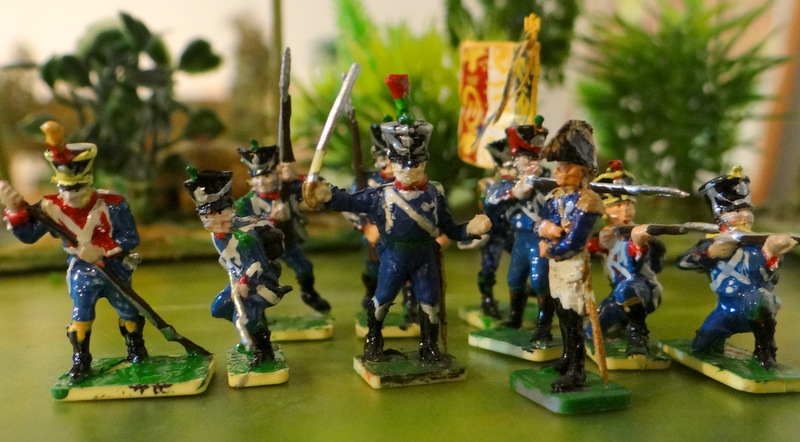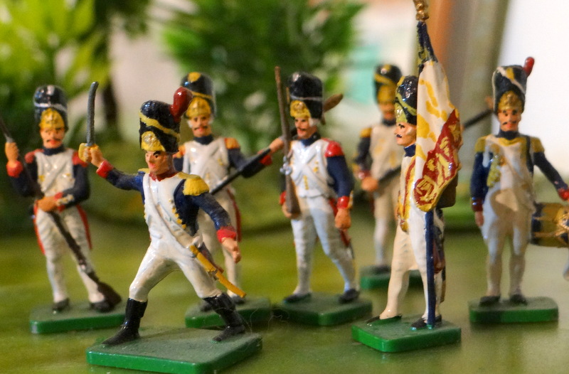 La marque proposait et propose toujours (bien que je n’ai pas trouvé la gamme napoléonienne sur son site ): La ligne et la garde française, l’artillerie à pied, les cuirassiers ; la ligne anglaise et les écossais, l’artillerie à cheval et les hussards le tout époque Waterloo. Les Prussiens vinrent ensuite.