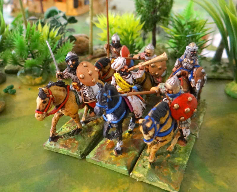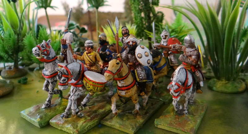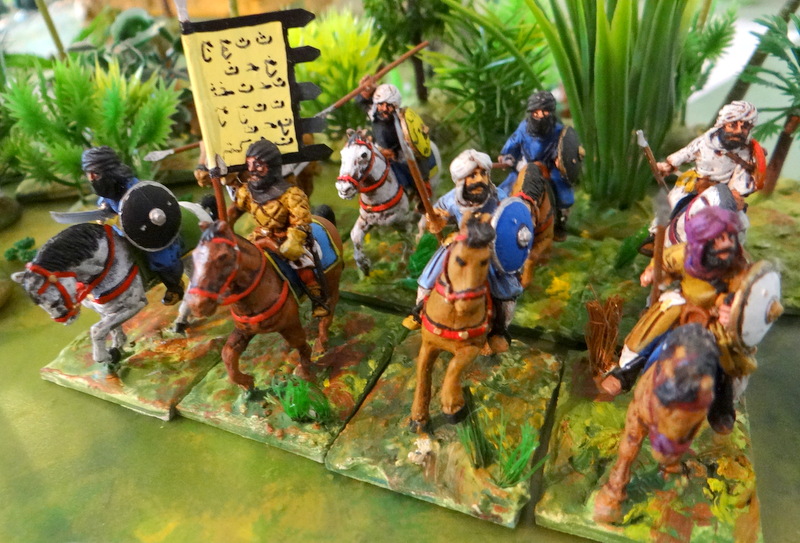 Autour de l’an mille, les califats recrutaient leur cavalerie non seulement sur place mais bénéficiaient de l’apport des états du Maghreb toujours prompts à intervenir face aux chrétiens. A noter qu’il n’y avait que peu de cadeaux entre frères, les Berbères ravagèrent Cordoue en 1013. Avant que leur cavalerie n’acquiert les caractéristiques qu’on lui attribue au moyen age à savoir le long burnous souvent à capuche et le bouclier en cœur, cette dernière présentait le profil commun des troupes de l’expansion arabe mâtiné de quelques accessoires chrétiens.