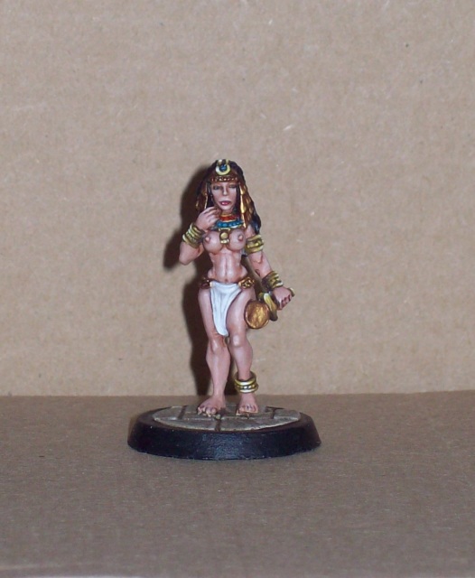 Avant que Mike Burns ne propose de sympathiques 28mm (parfois 30) sous la marque « Dark Fable ».Ce fabricant offre un ensemble de personnages de l’Egypte antique de niveau historico-mythico-pulp que vous pouvez retrouver présenté en situation dans le blog : http://oll.free.fr/Imagifig/. On y retrouve Cléopâtre bien sur !
