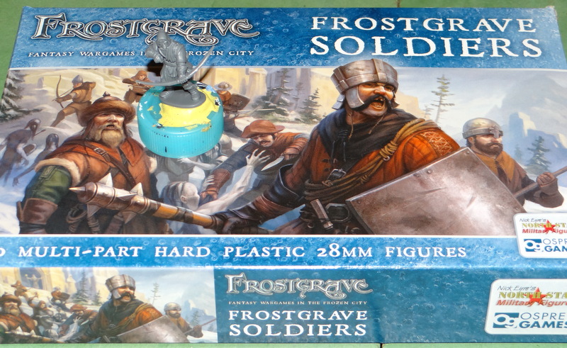Je découvre aussi la boite soldats « Frostgrave ». Je ne m’intéresse pas particulièrement au jeu mais j’espère réaliser, avec le contenu, pas mal de customisations à partir de mes autres boites médiévales. A noter par exemple des sacs, des gourdes, des rouleaux de corde, des arbalètes , des torches, des sacoches, des têtes, etc …