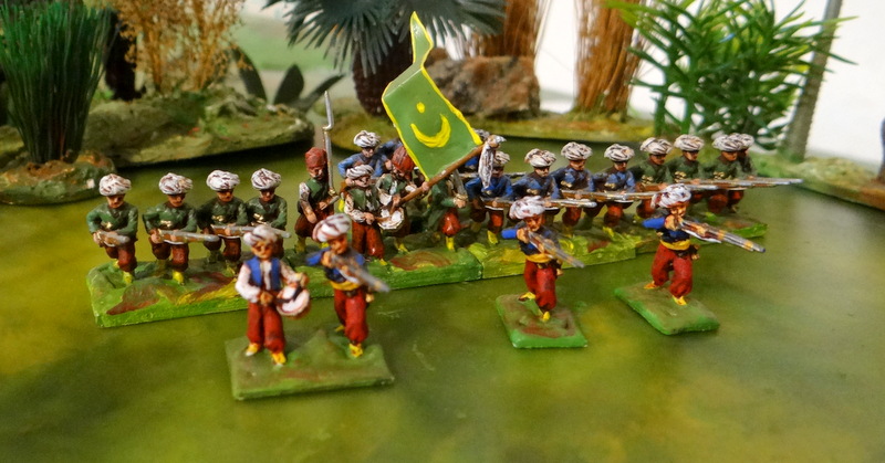 Auxiliaires arabes Fellahins , Derbents et Bédouins (bataille du Caire) – Exception confirmant la règle les 2 premières unités sont des Minifigs, derrière, les Bédouins sont des Touller