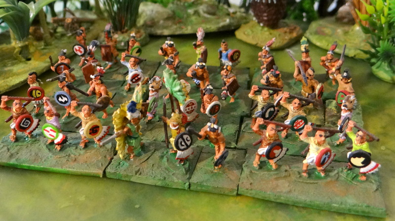 Poursuivant ma plongée dans « la petite histoire » d’un club bordelais, je zoome aujourd’hui sur les Aztèques. Début 90, le 15 mm est bien implanté chez les C.S.O. à tel point qu’une version 15mm de « Kadesh », la règle maison, est proposée. Pour sortir des sentiers battus je me suis alors tourné vers une armée exotique s’il en est, les Aztèques. Seule disponibilité de l’époque : les figurines Naismith, de vrais 15 par contre !