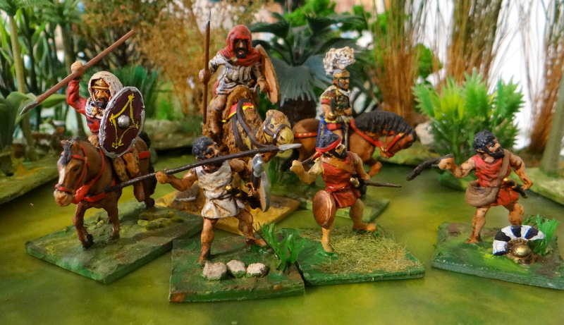 Derrière à droite un plumet rehaussé au milliput et deux capes à gauche (une unité dromadarii romaine et une cavalerie légère d’orient. Devant la réutilisation d’un javelinier en archer rhodien puis en frondeur . Bases Essex.