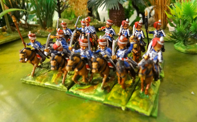 A noter les faibles effectifs des régiments à toutes occasions. Il n’est pas rare que le régiment n’aligne que 2 (surtout les guards) ou 3 escadrons de 120 sabres en campagne.