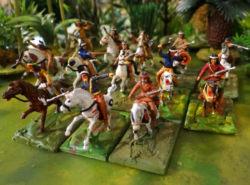 En tout je possède au moins 300 cavaliers indiens en 15 et 20 mm. La règle en préconise 600 d’où l’échelle de réduction que j’ai ajoutée à ma traduction.