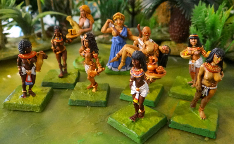 C’était avant que je ne découvre les figurines « Dark Fable » , fabriquant qui propose une visite de la cour des pharaons (un peu revue par Hollywood tout de même !). Initialement prévues pour le jeu « de rôle » ou Pulp, elles sont vendues pour des 28 mais certaines font un bon 30 ( les hommes). Les femmes sont plus petites.