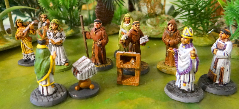 Ma collection de civils médiévaux s’étoffe avec la suite du prince (première photo) et l’audience de l’évêque (en deux). Je compte intégrer une partie de l’effectif dans une scénette utilisable sur le terrain ( SAGA, song of blades, sword play par exemple).