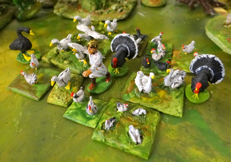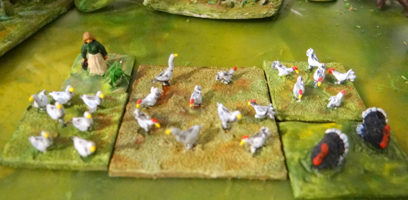 Volailles un peu plus visibles (25 mm, du Mirliton entre autres). Au premier plan on est sensé voir des pigeons !