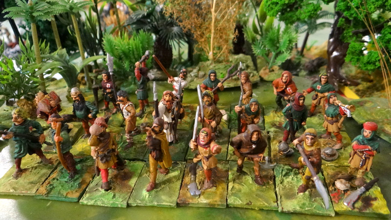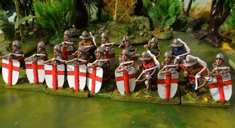 Le ban et l’arrière ban des croisades, les paysans et autres gueux partis chercher fortune en orient. Du CDD dont on ne revient pas ! Fait de plus en plus courant aux 12 et 13ème siècles, le paysan est souvent équipé d’armes dérivant d’outils agricoles (fauchard, marteau, fléau, fourche, ..) et d’armes d’hast (bill, guisarme …) Figurines Touller, ESSEX, Foundry…