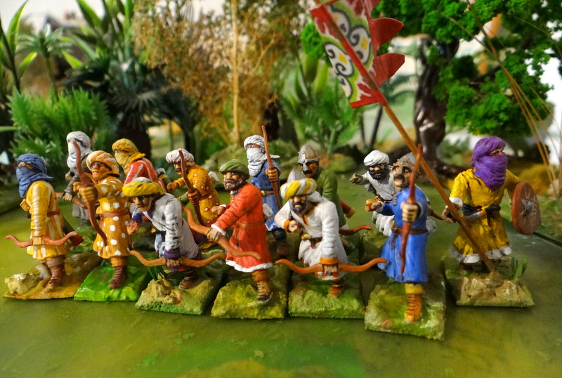 C’était avant que je n’adapte ma chaîne de mise en peinture à « la » figurine au détriment de l’unité tactique ! Avec la sortie des 2 derniers archers arabes, d’1 croisé et de 2 javeliniers grecs, voyons ce que cela donne.