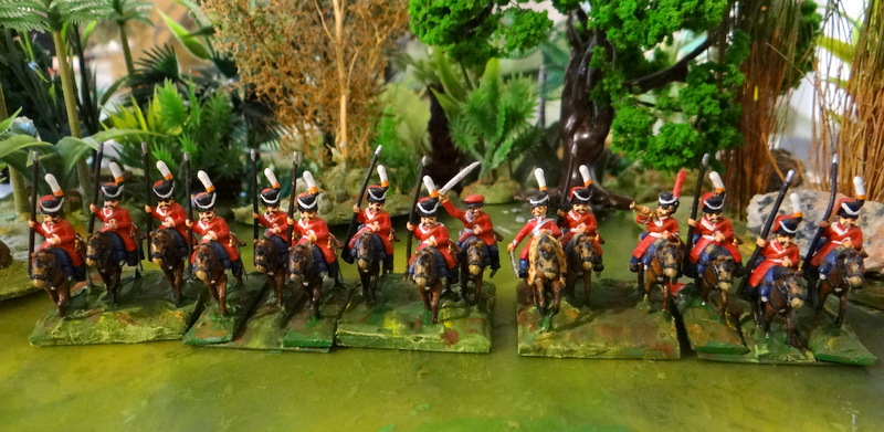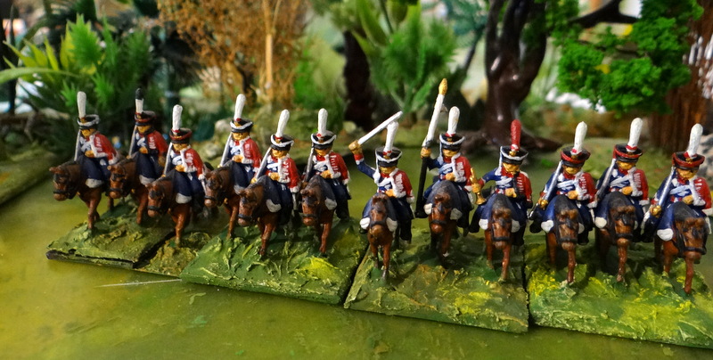 Avant certes, mais j’ai encore des dizaines pour ne pas dire cent pochettes de la marque première version (chevaux ancien modèle). Je viens de compléter d’un escadron trois de mes régiments russes. Les voilà :