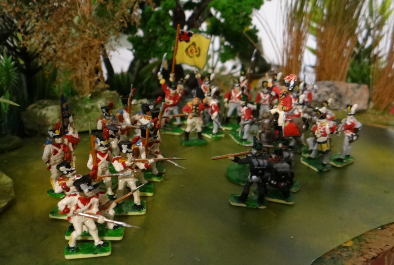 Premiers sortis les ennemis de waterloo : ici les Français que j’avais peint en lignards et en légers