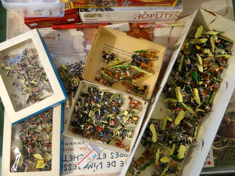 Bon, je ne retrouve pas les cuirs français qui sortirent de bonne heure. Voilà un medley de cavalerie avec 2 ou 3 cuirs et des figurines lourdement customisées.