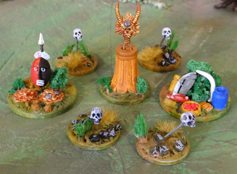 Divers articles prévus dans les scénarii : le buisson aux offrandes, le masque d’or, le trésor, les repères à tête de mort.