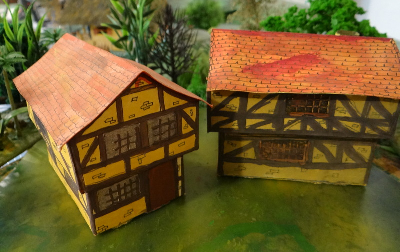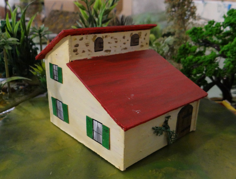 Parenthèse : Je viens de retrouver dans une boite quelques maisons en papier ou en carton que nous avions fabriquées au tout début du club soit début 80. A cette époque les décors étaient rares. Je me souviens de la marque Gallia qui a produit en premier de petites maisons creuses en résine cassante (du petit 15) puis courant 80 du 25 et du 1/300 éme et des modèles coulés dans la masse.