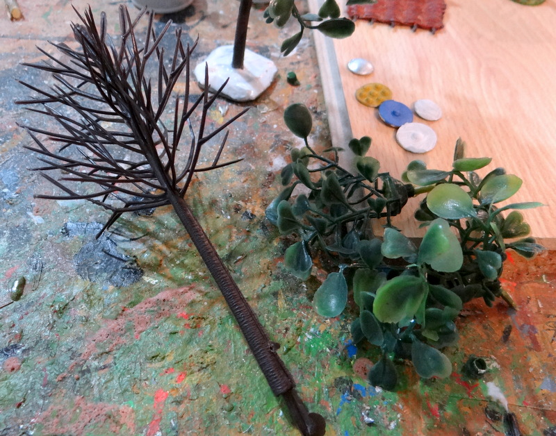 Du matériel : des troncs plastiques nus du commerce (merci Pascal), des éléments plastiques servant de déco de vitrines.
