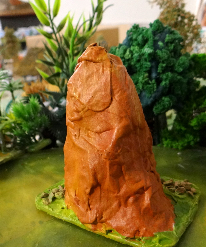 Les collines donnaient une vague idée de collines, les bois de même avec 2 arbres et du lichen etc … On peut dire que les décors étaient succincts. Avec les « skirmishs » les décors s’affinent, le détail fait la différence, la table de jeu devient un tableau vivant. Sauf pour cause de tournoi et encore (les tables de certains tournois sont maintenant étoffées), les joueurs se donnent la peine de créer des tables réalistes. J’abonde aussi dans ce sens ou au moins j’essaye !