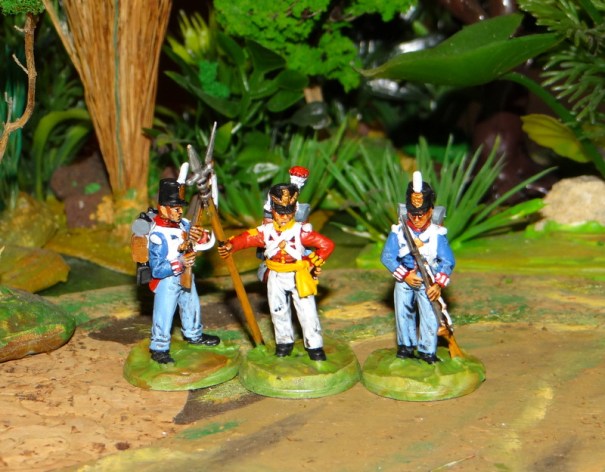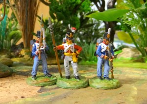 Avant que ces trois figurines 28 mm Perry sortent de l’atelier. Il s’agit là de compléter le corps anglobritannique en Espagne dans le cadre de la règle « songs of drums and shakos ».
