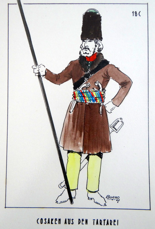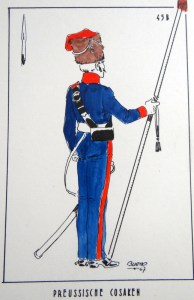 Il s’agit sûrement d’un cosaque germanophone sachant qu’en Allemagne seule la Prusse et la ligue hanséatique avaient des cosaques.
