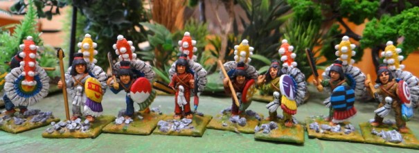 Retour vers mes aztèques Outpost. Je peux mettre maintenant en ligne ce nouveau groupe de guerriers aux bannières dorsales rondes. Cette particularité indique qu’ils ont capturé 2 ennemis afin d’approvisionner les sacrifices pratiqués en haut de la grande pyramide.
