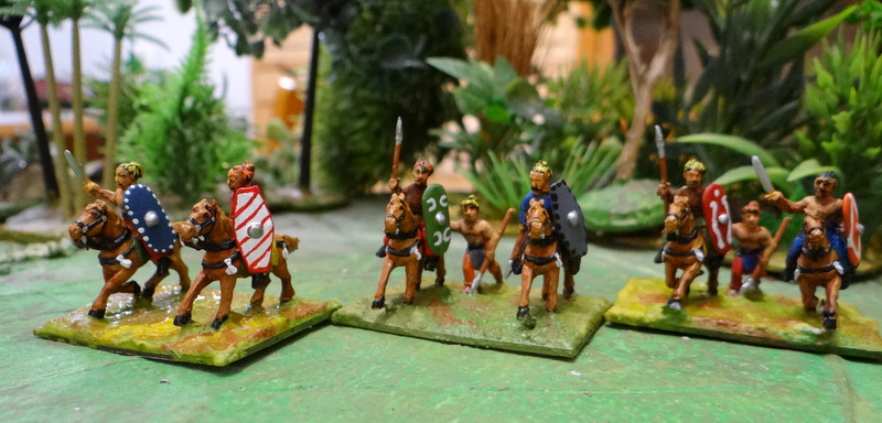 J’ai retrouvé dans mes stocks des Germains 15mm gravés par Alain Touller. On reconnait bien la patte du graveur aux chevaux genre « Przewalski » qu’il produisait. Un genre de cheval mongol doté d’une grosse tête. Particularité, Alain avait sorti une gamme « guerre des Gaules » incluant des cavaliers germains soutenus par de jeunes guerriers à pied. César nous dit qu’ils se cramponnaient à la queue des chevaux pour arriver au combat plus vite et soutenir leurs frères cavaliers qui étaient des guerriers plus aguerris. Je suis peut être le seul à en posséder !