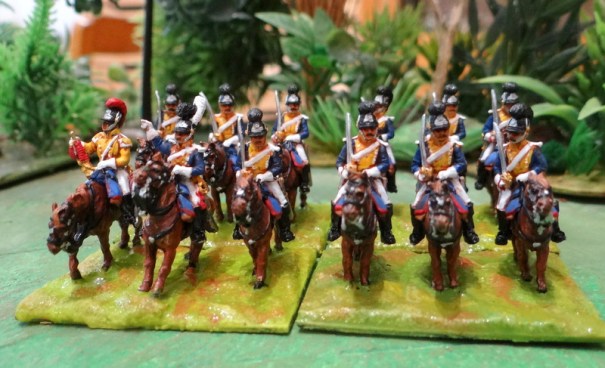 AB proposant 2 régiments de cavalerie du Wurtemberg vers 1811, je me suis dis qu’ils ne déparieraient pas dans ma vitrine si je les surveillaient bien afin qu’ils ne me fassent pas le coup de Leipzig. Je rappelle qu’à cette occasion, la cavalerie wurtemburgeoise nous a tapé dessus en traitre. Tu parles d’amis ! Bon on ne retiendra d’eux que leur belle charge à Essling où ils dégagèrent Bessiére des uhlans autrichiens..