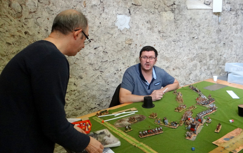ANTIKA 2018 se tient ce WE (6 et 7 octobre) dans la salle du château Lescombes à Eysines et ceci depuis des dizaines d’années. Toujours soutenu par la mairie de la ville, le club des Centurions clôture, en quelque sorte, son année ludique par ce tournoi traditionnel en 25mm. Nouveauté de l’année, des joueurs de Pampelune ont fait le déplacement, il faut dire que la règle retenue (l’art de la guerre de M. Caillé) fait un beau parcours européen.