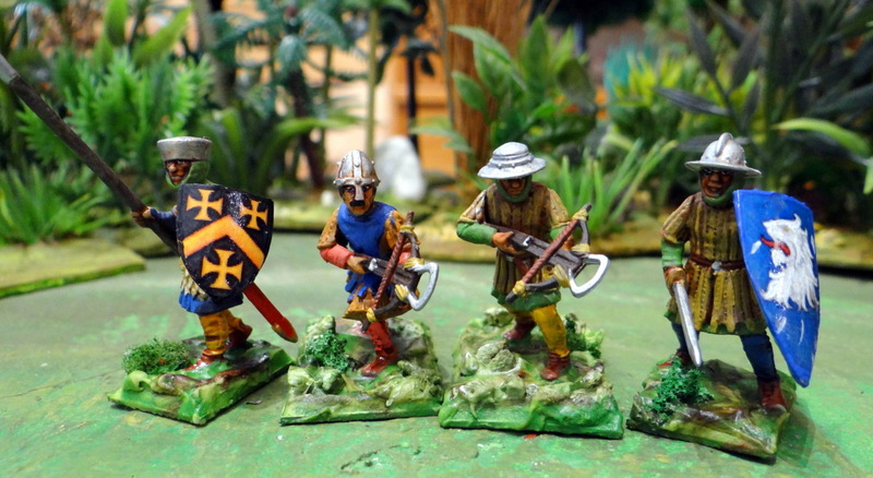 Je n’en avais plus …. mais je viens d’en retrouver une plaque de 8 dans une boite oubliée. Donc pour aujourd’hui voilà deux arbalétriers et deux soldats croisades qui arrivent en renfort.