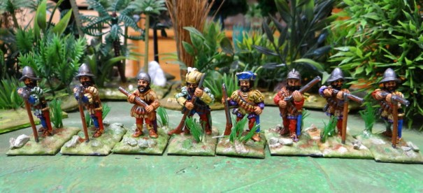 Ces figurines sont des Outpost écossaises. Comme évoqué dans un billet précédent, elles sont un peu rondelettes ce qui se voit moins sur les figurines aztèques de la gamme. Reste en chantier une unité de hallebardiers.