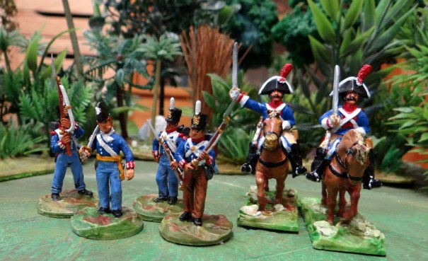 Des renforts espagnols pour « drums and shakos ». 2 dragons de chez Front Rank. et 4 fantassins Perry.
