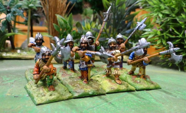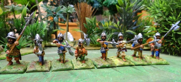 Dernière pochette en ma possession, 8 hallebardiers conquistadors. Ils viennent étoffer mon petit corps expéditionnaire espagnol qui partira bientôt à la conquête de Mexico-Tenochtitlan.