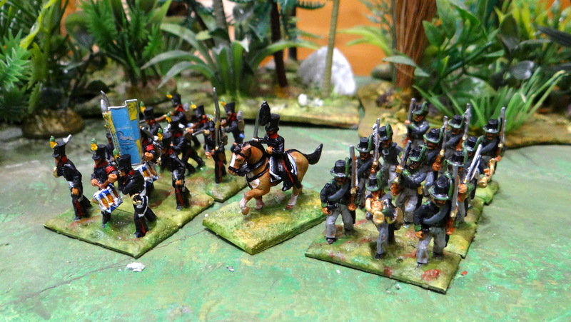 Toujours aussi noirs (ils portent le deuil de leur pays cf au souhait de leur duc). Avec les reliquats de figurines CGM, j’ai réussi à aligner le premier bataillon du 1er de ligne en 1815. A noter que seuls les régiments d’infanterie de ligne avaient un drapeau.