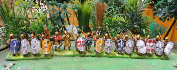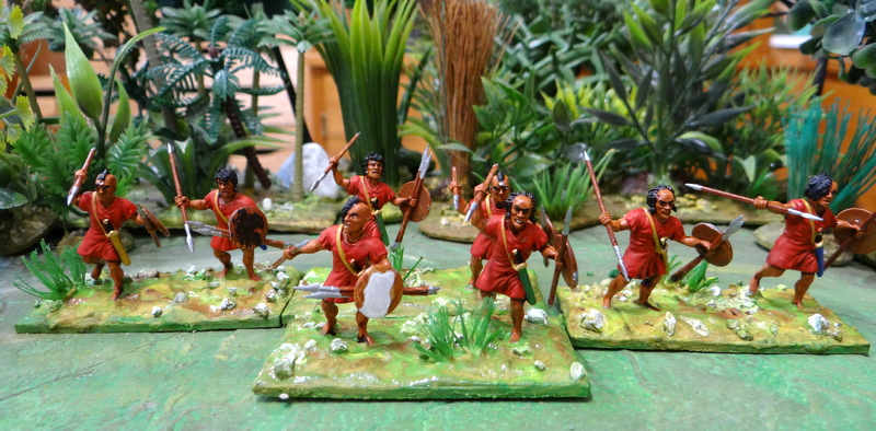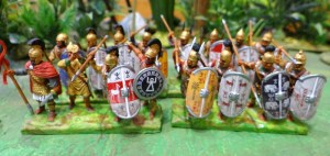 Les javeliniers libyens : Les membres des tribus libyennes composent une grande partie des armées de Carthage. On y trouve une majorité de javeliniers. Certaines tribus se rasent la tête en conservant soit une mèche soit un toupet retenu par une broche d’argent. Le Libyen porte une courte tunique de cuir rouge et un petit bouclier rond en cuir de bovin. Les javelots ont des longueurs variables.