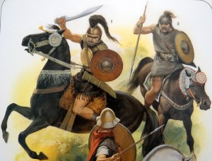 Cavalerie Celte Ibère d’après Ospreys. Voyant cette image je me rends compte que j’ai collé tous les fourreaux des falcatas à l’envers.