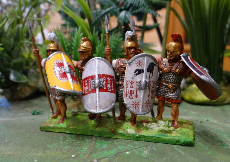 En premier une plaquette de vétérans équipés de côtes et boucliers romains. Je passe donc l’unité à 28. 2 boucliers bricolés.