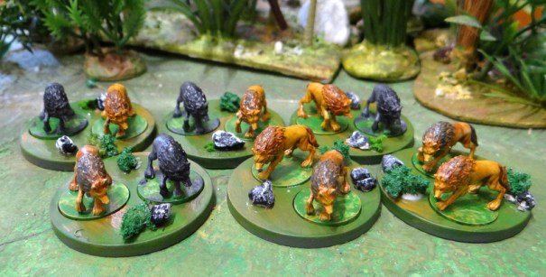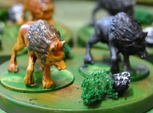 La boite Jeanne d’Arc contient 12 loups qui sont sensés intervenir dans les parties proposées par les scénarii qu’elle contient. Je leur ai donné un coup de pinceau et on verra bien ce que je pourrai en faire plus tard. Ils peuvent peut être juste intégrer le décor d’une rencontre « guerre de cent ans ».