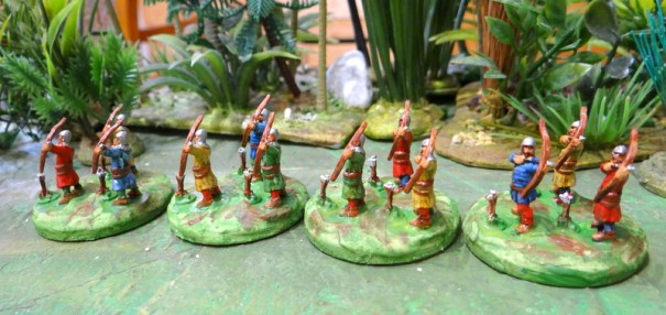 4 nouvelles plaquettes d’archers, la terreur de Crécy. Les grands arcs anglais furent en grand partie responsables des 30 000 morts français (sur une armée de 50 000). L’archer anglais pouvait semble-t-il, tirer jusqu’à plus de 400 m (disent les historiens). A Crécy la portée utile était plutôt de 200 à 300 m. Voir si intéressé le site : https://combatmedieval.com/la-bataille-de-crecy-1346-et-lutilisation-des-arcs/