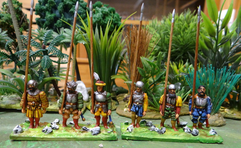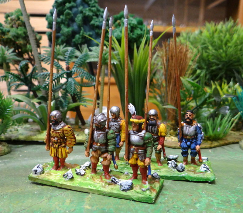 Histoire de varier j’ai colorisé 6 lansquenets offerts par le magasine Wargames illustrated. N’ayant pas d’armée renaissance, je compte intégrer ces joyeux drilles dans mon équipe de conquistadors partie coloniser le Mexique depuis longtemps (voir un post antérieur). Ces lansquenets sont de la même époque mais un peu mieux habillés que les conquistadors qui pour la plupart étaient des mercenaires, des hobereaux désœuvrés voire des brigands vêtus en partie de loques. Seul l’appât du gain via une fakenews (l’existence de monceaux d’or dans ces nouvelles Indes découvertes il y a peu par Colomb) produite par des rigolos comme Cortez et autre Pizzaro les avaient motivés.