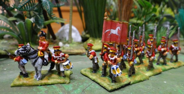 Qui dit faire une incursion côté Waterloo dit s’intéresser un peu aux alliés de la perfide Albion. Après quelques hollando-belges, j’ai colorisé un beau bataillon d’Hanovrien de la légion anglo-germanique. Cette légion de l’armée britannique, appelée King’s german légion était constituée de bataillons de soldats Hanovriens qui, après l’invasion du Hanovre par l’armée française, avaient émigré en Angleterre.Le Hanovre, la Grande-Bretagne et l’Irlande avaient en effet le même souverain depuis que l’électeur de Hanovre Georg-Ludwig était devenu roi d’Angleterre sous le nom de Georges Ier en 1714. (dixit Wikipedia).