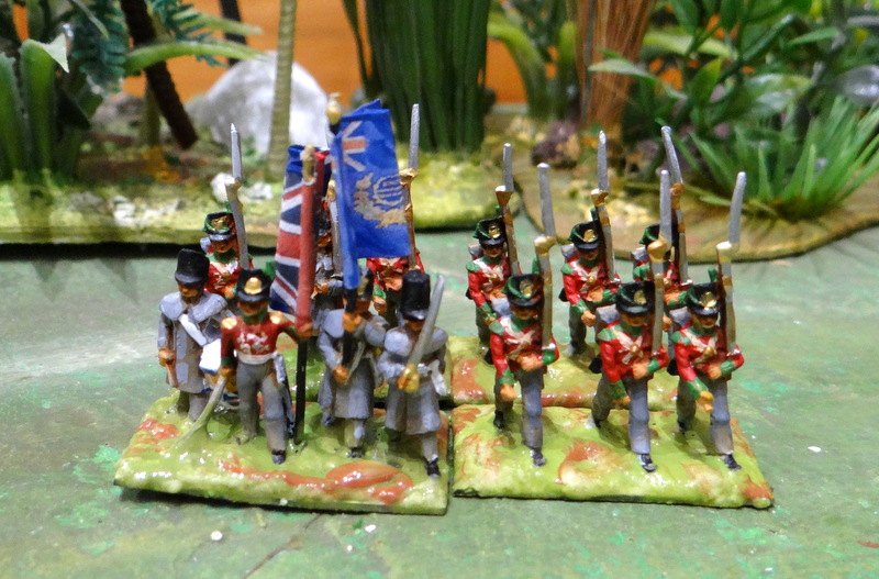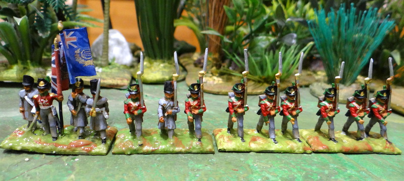 Un bataillon de jagers de la légion allemande à distinctives noires. A cette échelle j’ai recyclé des rifles d’autant qu’on ne voit pas les tresses des « dolmans », en effet les KGL portaient une veste sans brandebourg.