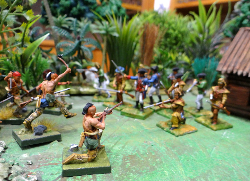 Cadeau de la revue W Illustrated, j’ai mis en couleur une dizaine de « patriotes Warlords » qui défendent ici leur maison face à une bande d’Iroquois enragés.