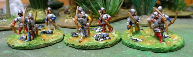 9 archers Essex que Pascal P. m’avait donné il y a plus de 15 ans. Du coup ils vont rejoindre l’armée Jeanne d’Arc 15 mm que j’ai terminée l’an passé.
