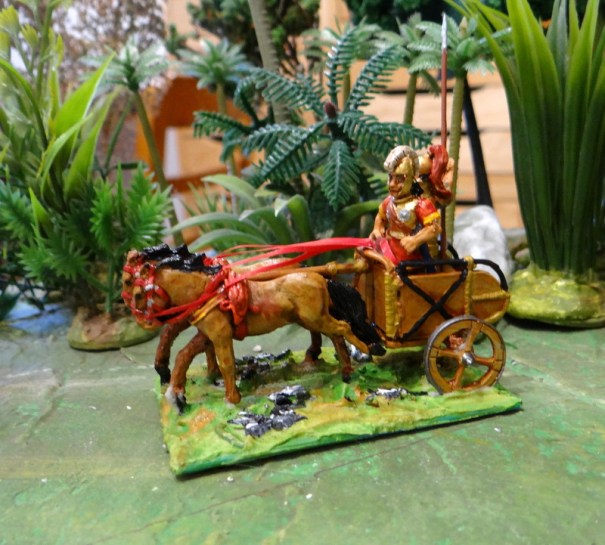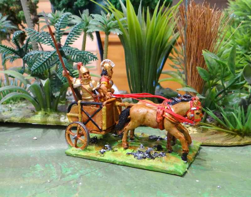 Char classique avec un guerrier en armure mycénienne et un cocher.
