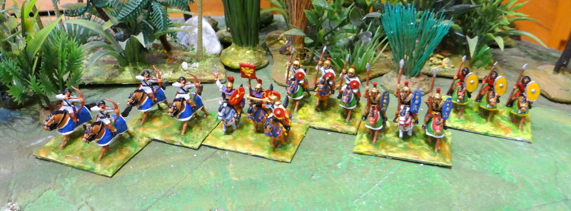 Il s’agit de Romains bas empire. Cavalerie lourde avec cuirasse et lance, moyenne en tunique et javelot et alliée barbare javelot.