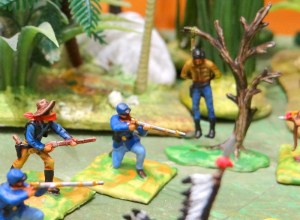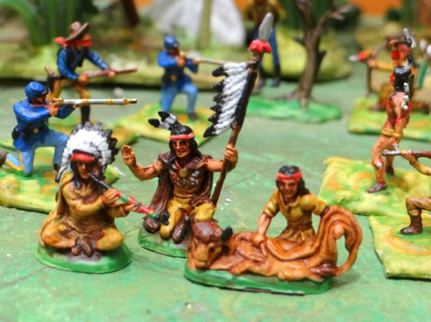 Point de « soldats de plomb » pour nos bourses étriquées. Dans les années 60/70 les 20 mm plastiques des marques Italieri, Atlantic et autres Airfix régnaient en maître avec des boites pas chères que l’on trouvaient même chez l’épicier du coin. Retour vers cette époque avec quelques modèles que je viens de peindre pour le fun. En fait tout l’univers du Western a été traité par ces fabricants (les indiens, les différents camps, les cow-boys, les civils, les bisons, les troupeaux de bœufs, le outlaws, l’US cavalerie, Davy Crockett et Kit Carson etc . Le fort et la ville western existent également.