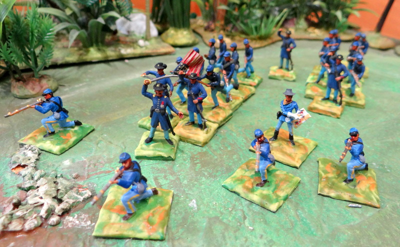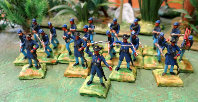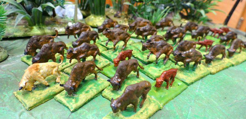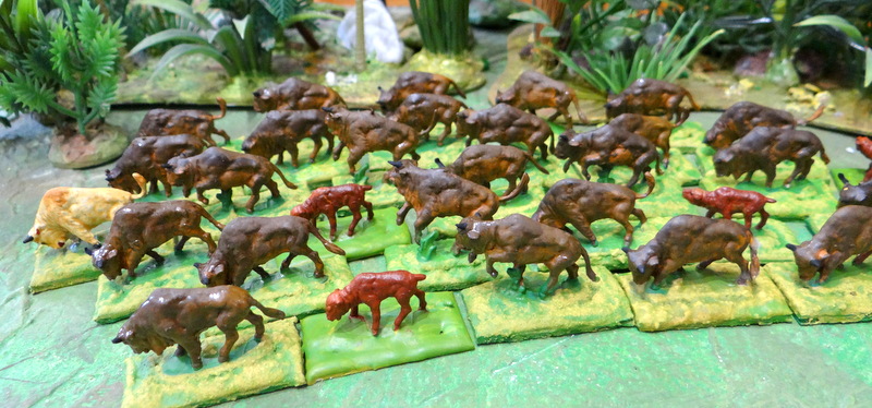 Les bisons, chers aux films de cowboys, sont de retour. Comme déjà évoqué, le plastique se fragilise avec le temps. Queues et pattes sont extrêmement cassantes. J’ai ravivé un peu les socles, l’herbe parait plus fraîche.