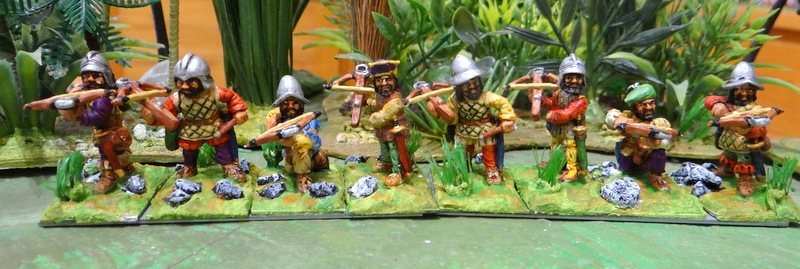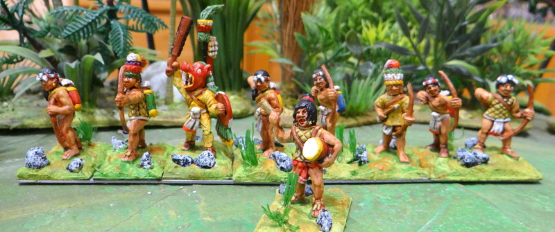 Qu’est ce que la conquête du Mexique par Cortès était sinon un holdup à grande échelle avec circonstances aggravantes que l’on qualifieraient de nos jours de génocide. Il faut dire que « les conquistadors » (c’est leur faire un honneur immérité !) étaient pour la plupart soit des nobliaux sans fortune ni morale soit des aventuriers sans scrupules voire des bandits de grands chemins. Je reprends avec cette série la gamme Aztèques/conquistadors d’Outpost miniatures une firme écossaise que j’aime bien. D’une part les gérants sont sympas, à l’écoute et rapides, d’autre part les figurines sont plaisantes à peindre avec un petit embonpoint de bon aloi. Elles me rappellent les premiers Dixon.