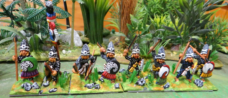 Toujours chez Outpost, voila une unité de prêtres guerriers. Des tatoués ayant à cœur leur métier il faut en convenir. Des milliers de sacrifices ( de quoi écœurer pourrait on dire !) furent faits lors de l’inauguration de la grande pyramide de Tenochtitlan (entre 3 et 84 000 belle fourchette ! disent les chroniqueurs)