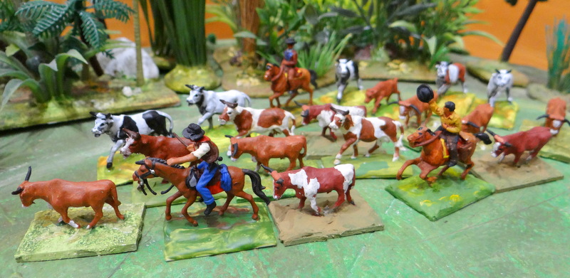 Je poursuis ma visite chez « Atlantics ». Tout un troupeau de vaches et ses gardiens. Ici un aperçu, il y a 40 vaches en fait. Une partie d’entre elles sont des « Minifigs » métal 15mm.